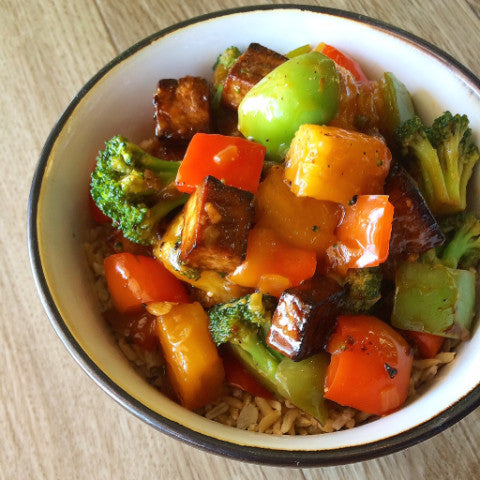 Like the Chinese takeout version... but healthier and full of vegetables... AND pineapple! We marinate and bake the tofu for optimal flavor and texture.